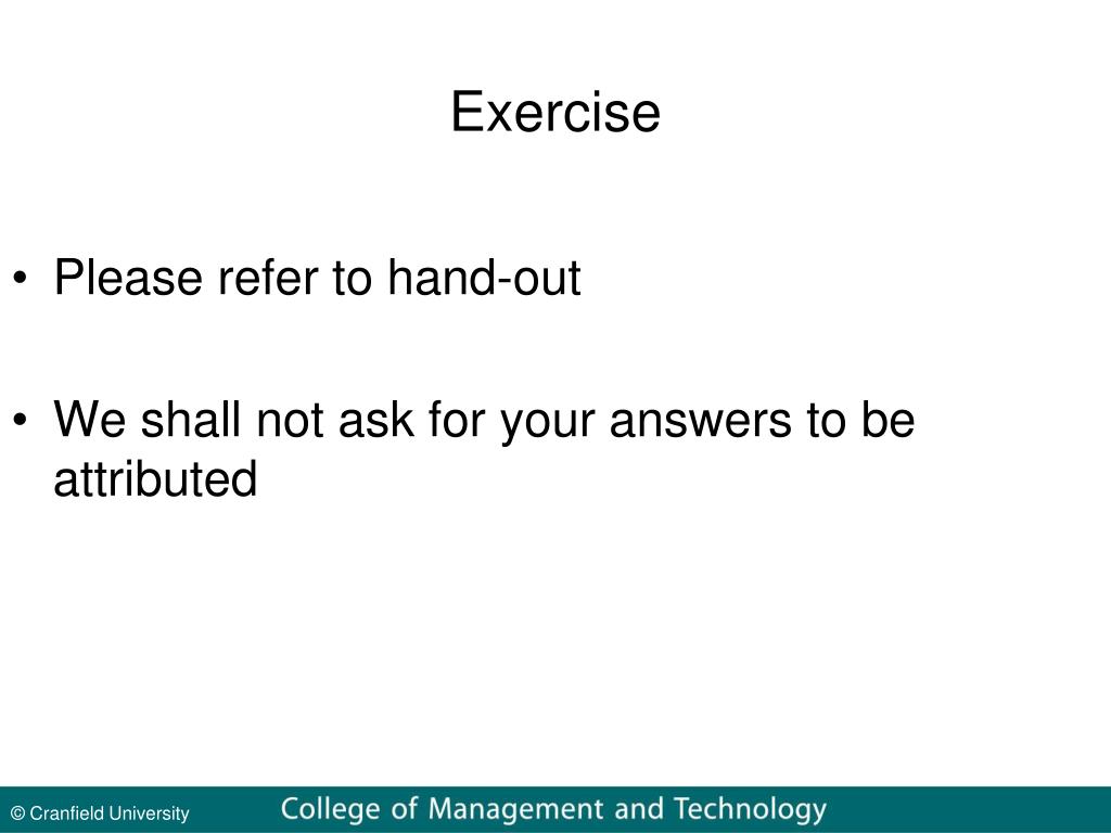 Exercise Please refer to hand-out We shall not ask for your answers to be attributed