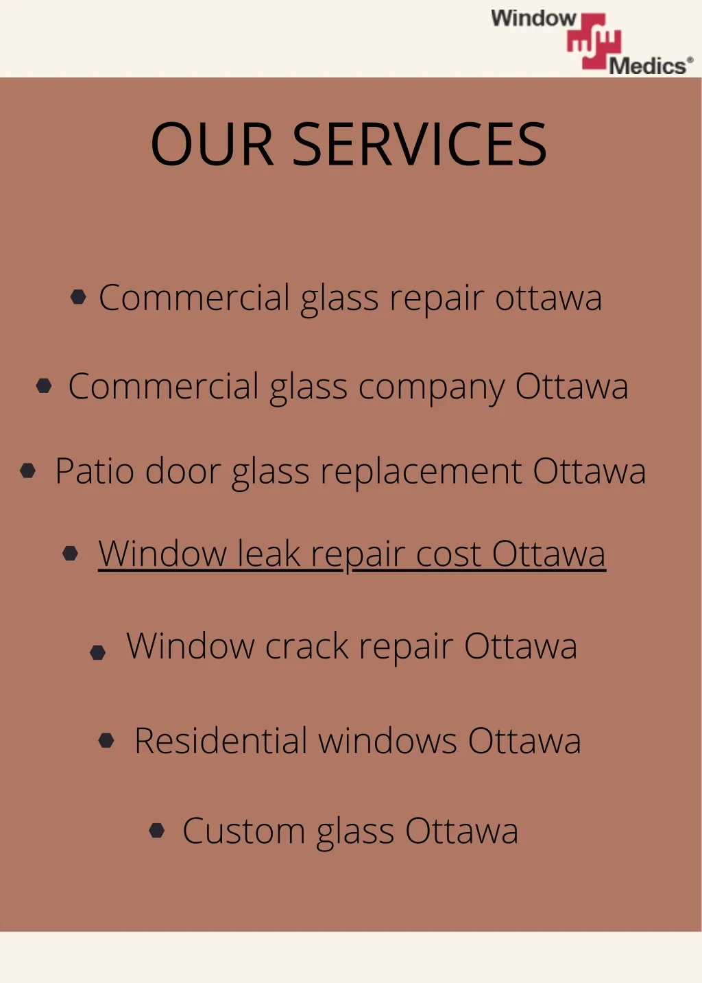 OUR SERVICES Commercial glass repair ottawa Commercial glass company Ottawa Patio door glass replacement Ottawa Window leak repair cost Ottawa Window crack repair Ottawa Residential windows Ottawa Custom glass Ottawa