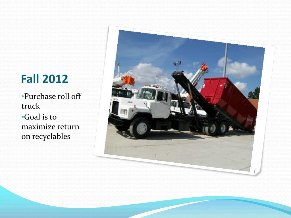 Fall 2012 Purchase roll off truck Goal is to maximize return on recyclables