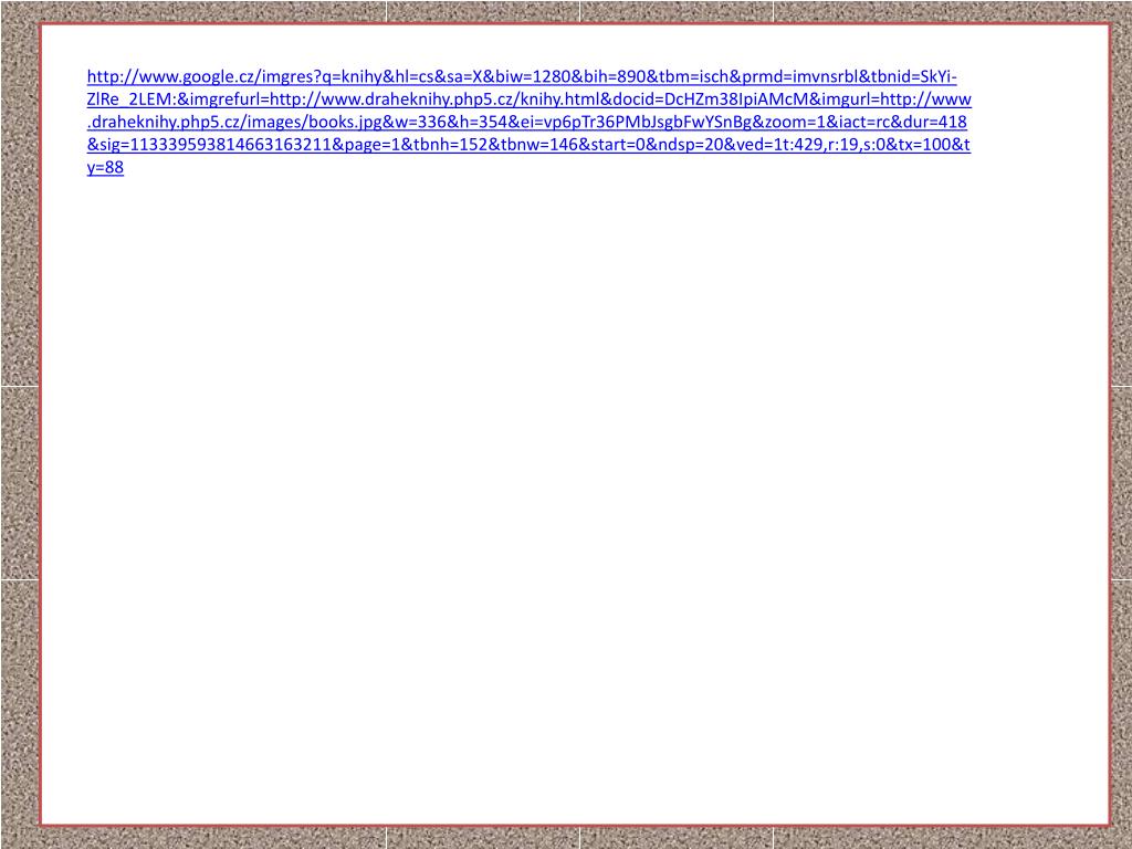 http://www.google.cz/imgres?q=knihy&hl=cs&sa=X&biw=1280&bih=890&tbm=isch&prmd=imvnsrbl&tbnid=SkYi-ZlRe_2LEM:&imgrefurl=http://www.draheknihy.php5.cz/knihy.html&docid=DcHZm38IpiAMcM&imgurl=http://www.draheknihy.php5.cz/images/books.jpg&w=336&h=354&ei=vp6pTr36PMbJsgbFwYSnBg&zoom=1&iact=rc&dur=418&sig=113339593814663163211&page=1&tbnh=152&tbnw=146&start=0&ndsp=20&ved=1t:429,r:19,s:0&tx=100&ty=88http://www.google.cz/imgres?q=knihy&hl=cs&sa=X&biw=1280&bih=890&tbm=isch&prmd=imvnsrbl&tbnid=SkYi-ZlRe_2LEM:&imgrefurl=http://www.draheknihy.php5.cz/knihy.html&docid=DcHZm38IpiAMcM&imgurl=http://www.draheknihy.php5.cz/images/books.jpg&w=336&h=354&ei=vp6pTr36PMbJsgbFwYSnBg&zoom=1&iact=rc&dur=418&sig=113339593814663163211&page=1&tbnh=152&tbnw=146&start=0&ndsp=20&ved=1t:429,r:19,s:0&tx=100&ty=88