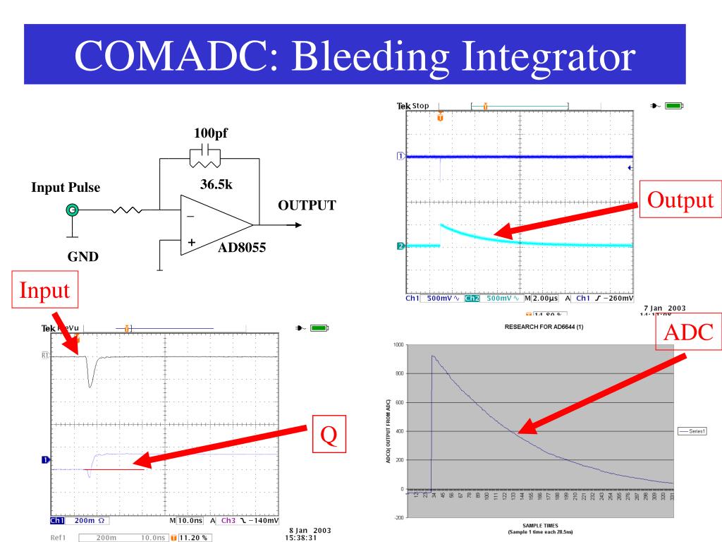 100pf 36.5k Input Pulse OUTPUT _ + AD8055 GND COMADC: Bleeding Integrator Output Input ADC Q
