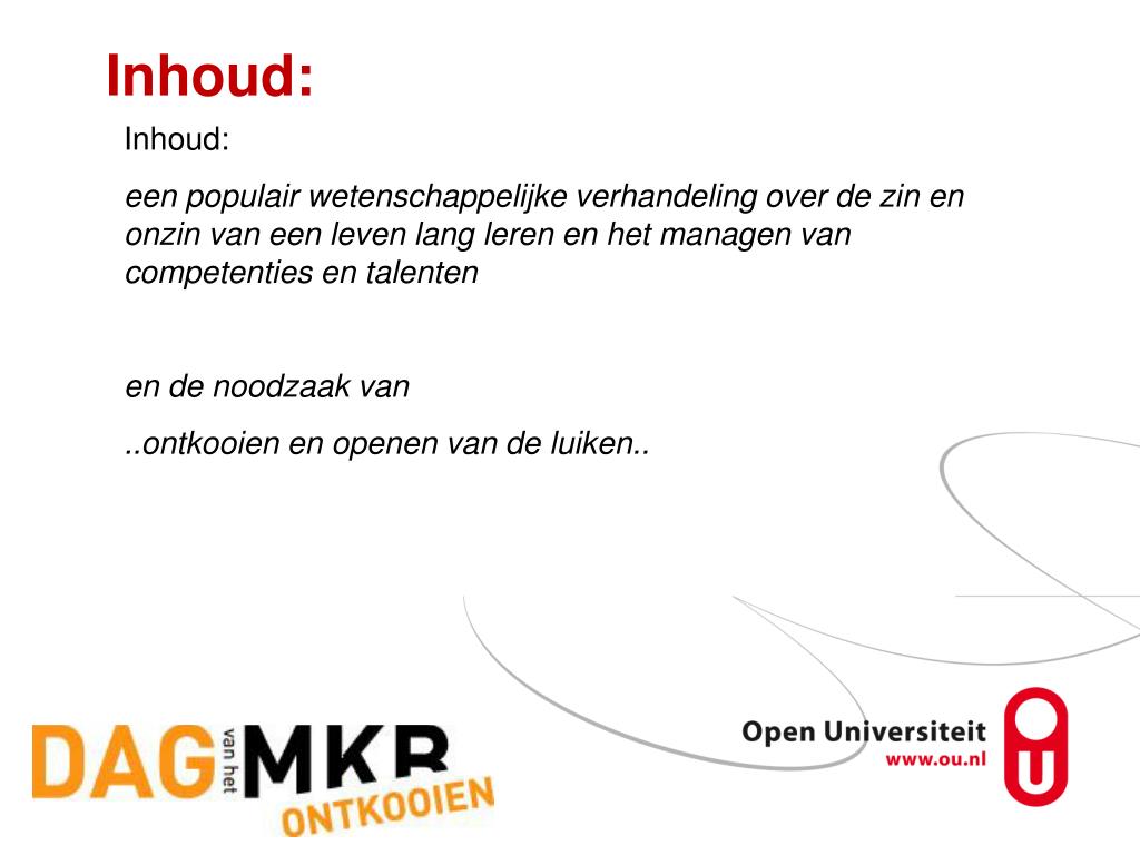 Inhoud: Inhoud: een populair wetenschappelijke verhandeling over de zin en onzin van een leven lang leren en het managen van competenties en talenten en de noodzaak van ..ontkooien en openen van de luiken..