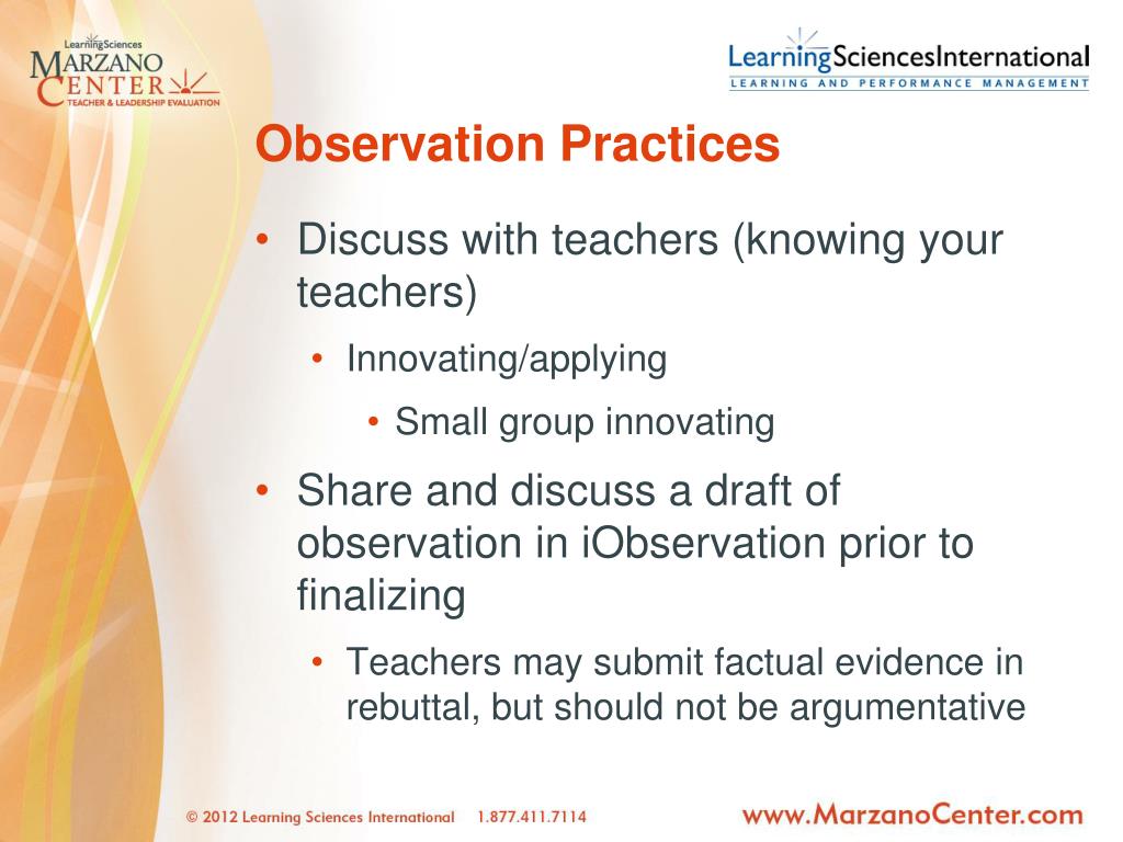 Observation Practices • Discuss with teachers (knowing your teachers) • Innovating/applying • Small group innovating • Share and discuss a draft of observation in iObservation prior to finalizing • Teachers may submit factual evidence in rebuttal, but should not be argumentative