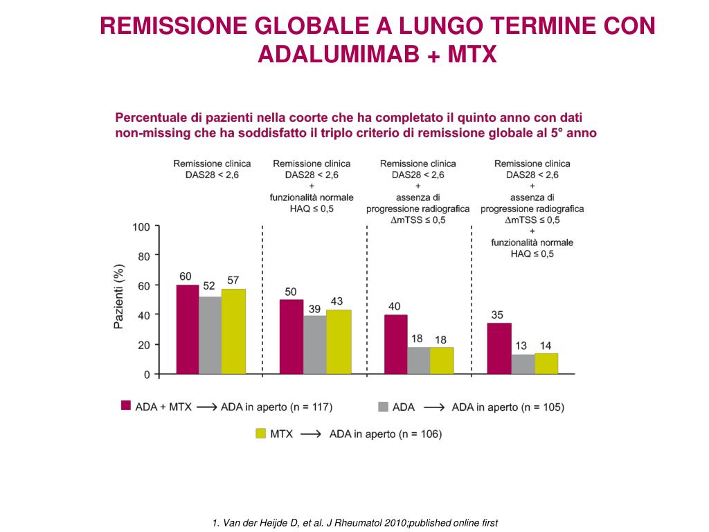 REMISSIONE GLOBALE A LUNGO TERMINE CON ADALUMIMAB + MTX 1. Van der Heijde D, et al. J Rheumatol 2010;published online first