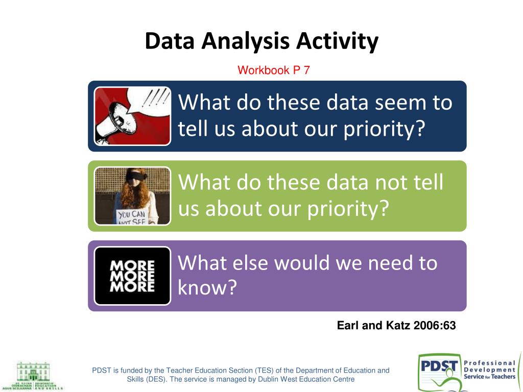 Data Analysis Activity Workbook P 7 Earl and Katz 2006:63 PDST is funded by the Teacher Education Section (TES) of the Department of Education and Skills (DES). The service is managed by Dublin West Education Centre
