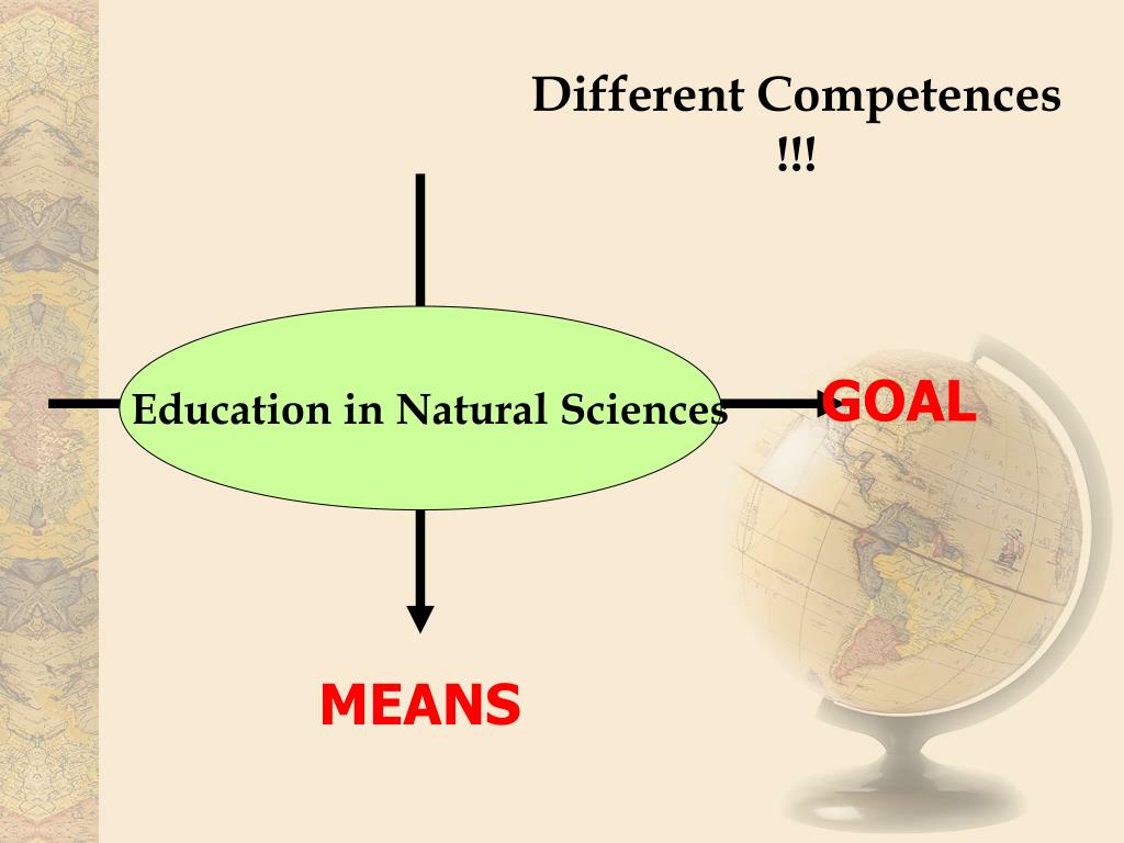 Different Competences !!! GOAL Education in Natural Sciences MEANS