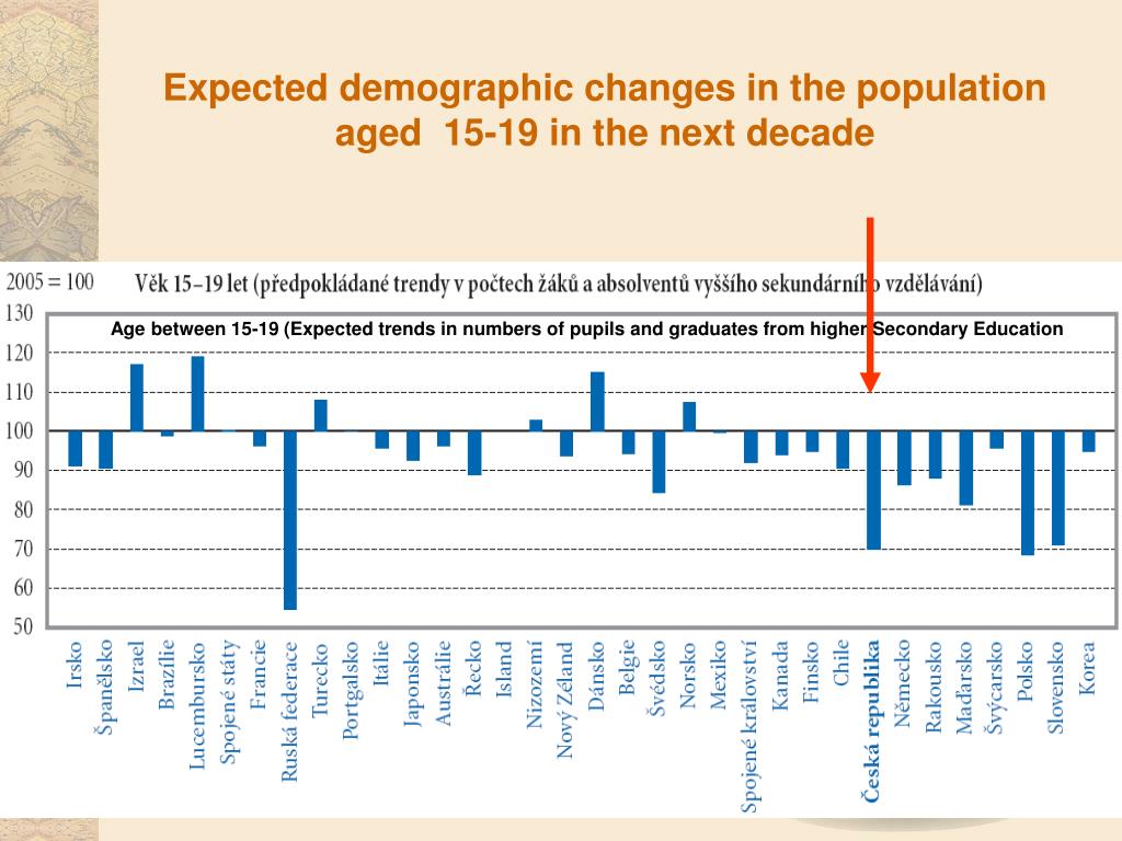 Expected demographic changes in the population aged 15-19 in the next decade Age between 15-19 (Expected trends in numbers of pupils and graduates from higher Secondary Education