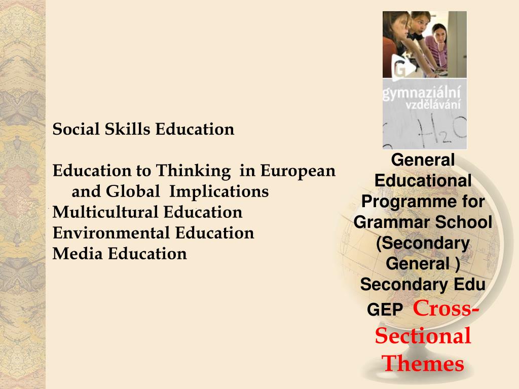 Social Skills Education Education to Thinking in European and Global Implications Multicultural Education Environmental Education Media Education General Educational Programme for Grammar School(Secondary General ) Secondary Edu GEP Cross-Sectional Themes