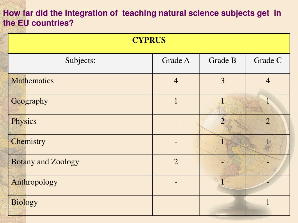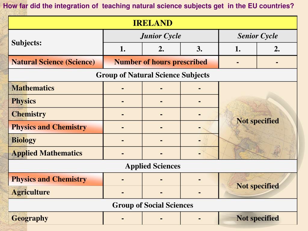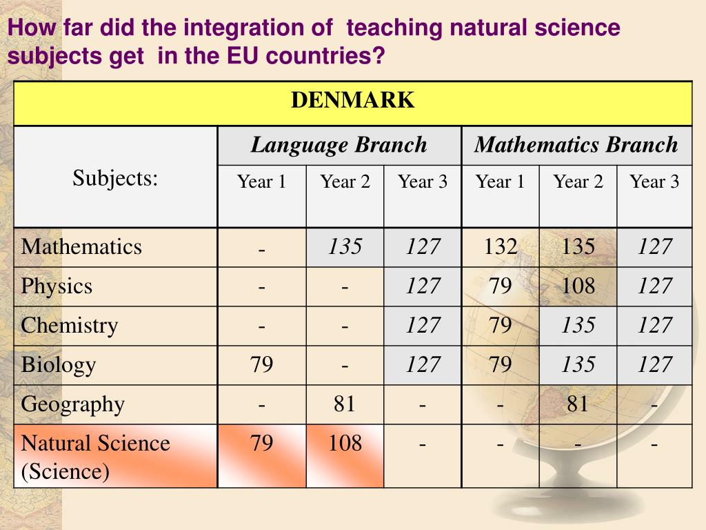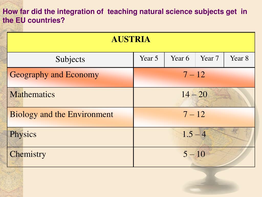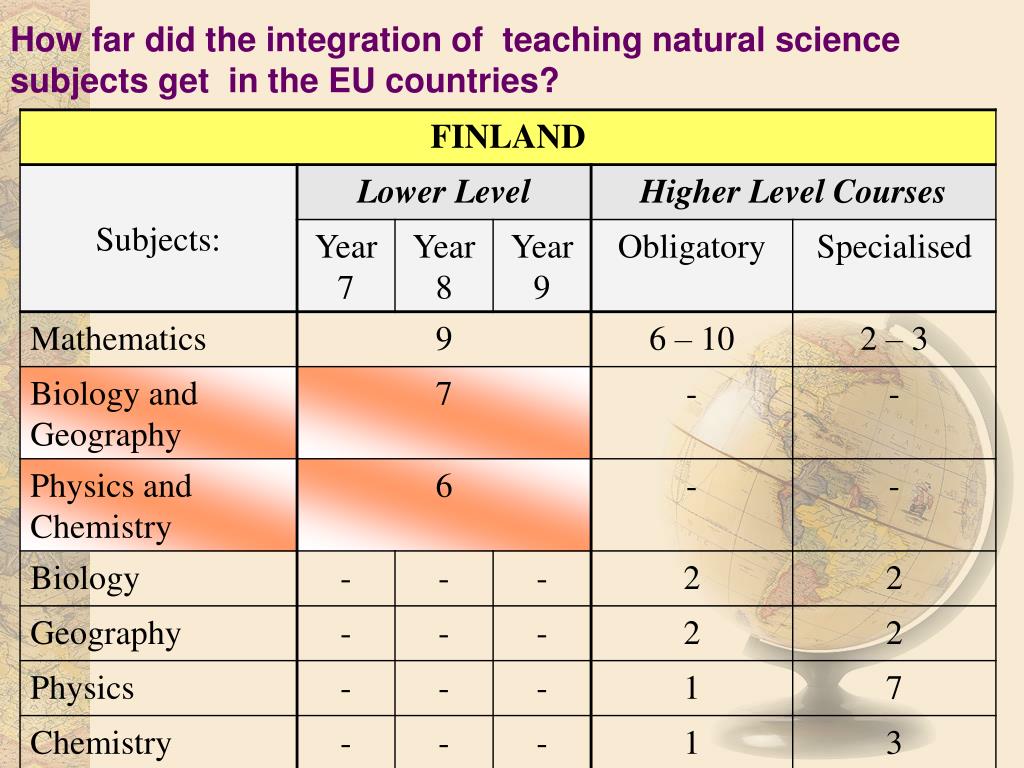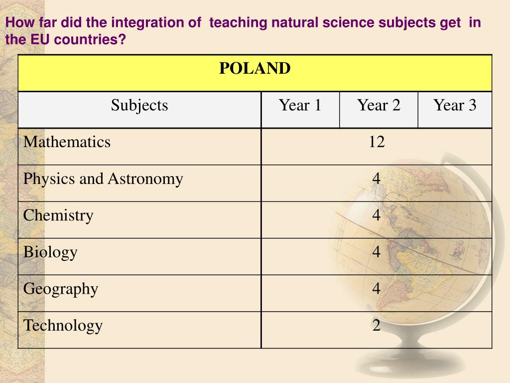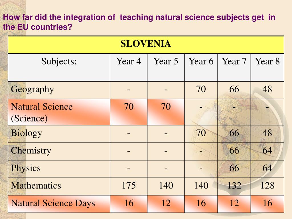 How far did the integration of teaching natural science subjects get in the EU countries?