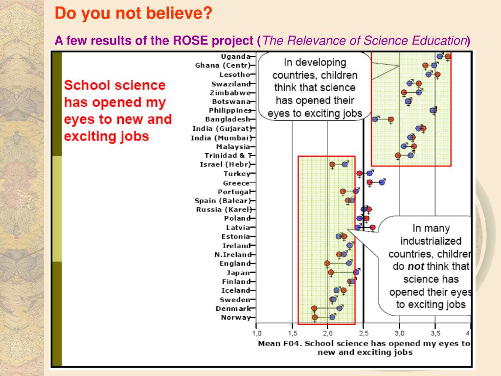 Do you not believe? A few results of the ROSE project (The Relevance of Science Education)
