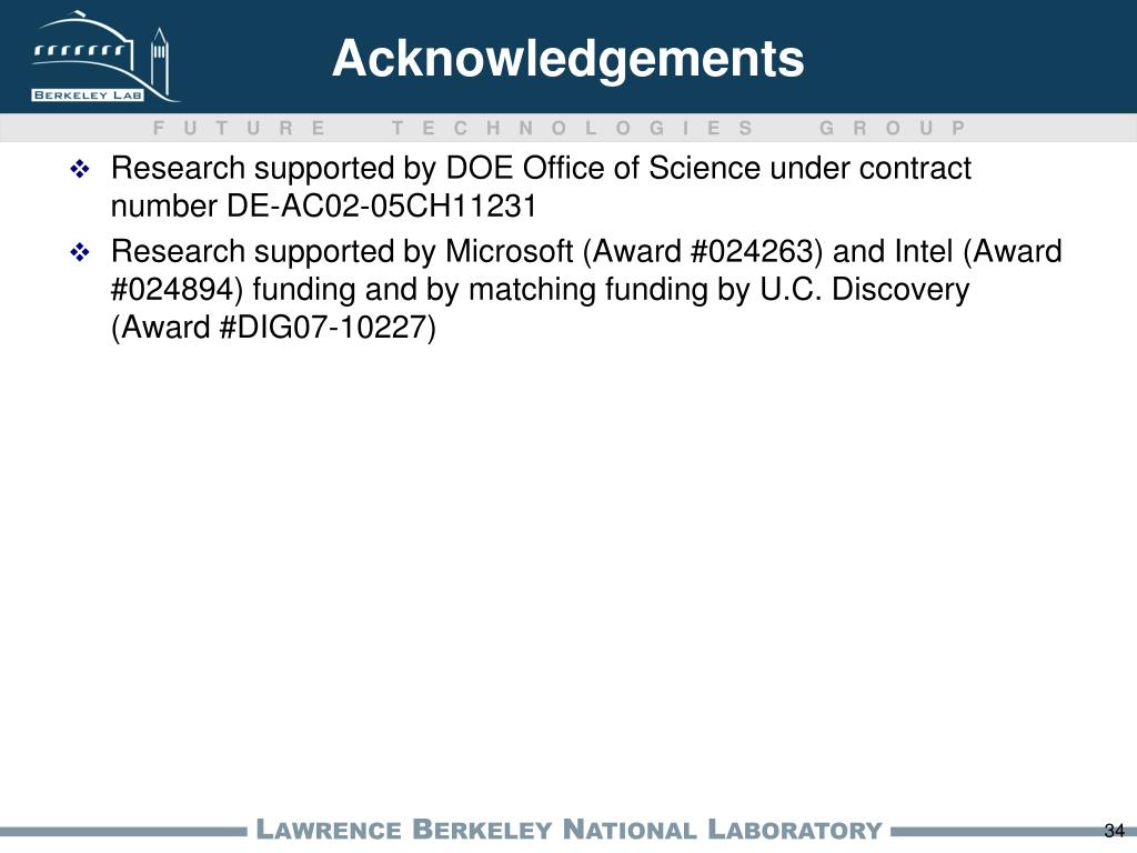 Acknowledgements • Research supported by DOE Office of Science under contract number DE-AC02-05CH11231 • Research supported by Microsoft (Award #024263) and Intel (Award #024894) funding and by matching funding by U.C. Discovery (Award #DIG07-10227)