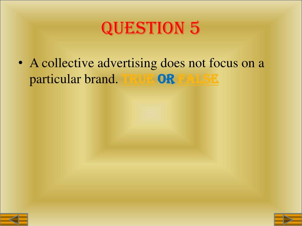 QUESTION 5 • A collective advertising does not focus on a particular brand. true or false