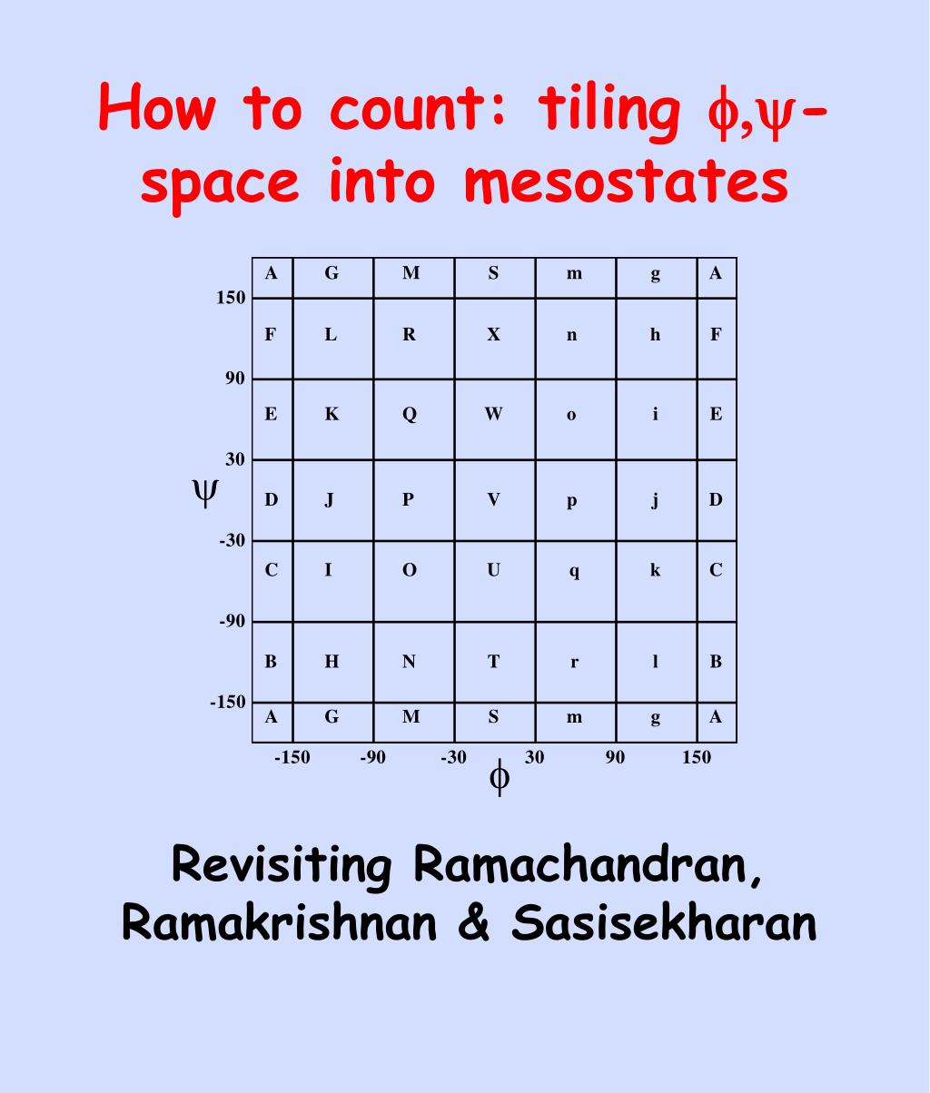 How to count: tiling f,y-space into mesostates Revisiting Ramachandran, Ramakrishnan & Sasisekharan