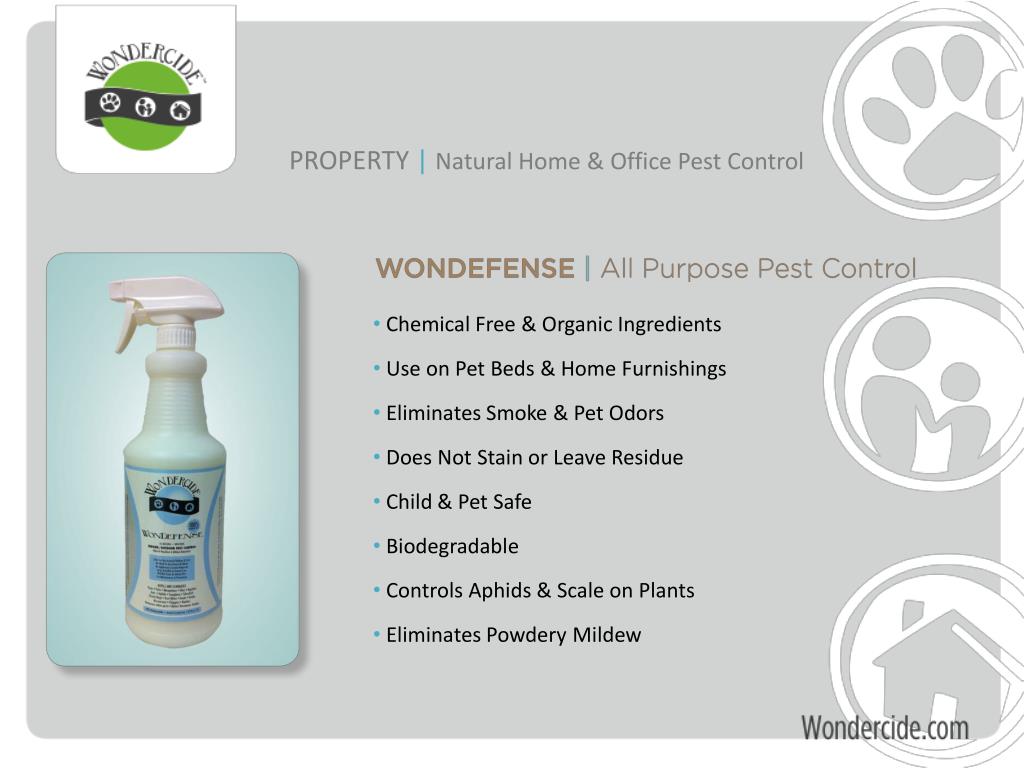 PROPERTY |Natural Home & Office Pest Control • Chemical Free & Organic Ingredients • Use on Pet Beds & Home Furnishings • Eliminates Smoke & Pet Odors • Does Not Stain or Leave Residue • Child & Pet Safe • Biodegradable • Controls Aphids & Scale on Plants • Eliminates Powdery Mildew