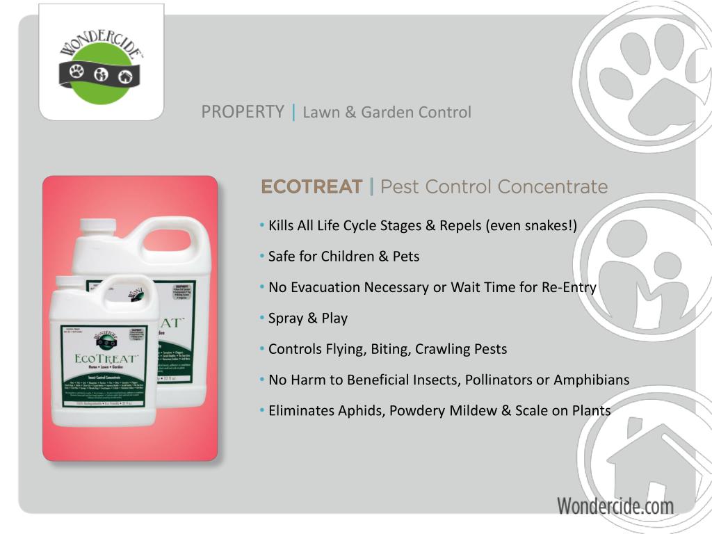 PROPERTY |Lawn & Garden Control • Kills All Life Cycle Stages & Repels (even snakes!) • Safe for Children & Pets • No Evacuation Necessary or Wait Time for Re-Entry • Spray & Play • Controls Flying, Biting, Crawling Pests • No Harm to Beneficial Insects, Pollinators or Amphibians • Eliminates Aphids, Powdery Mildew & Scale on Plants