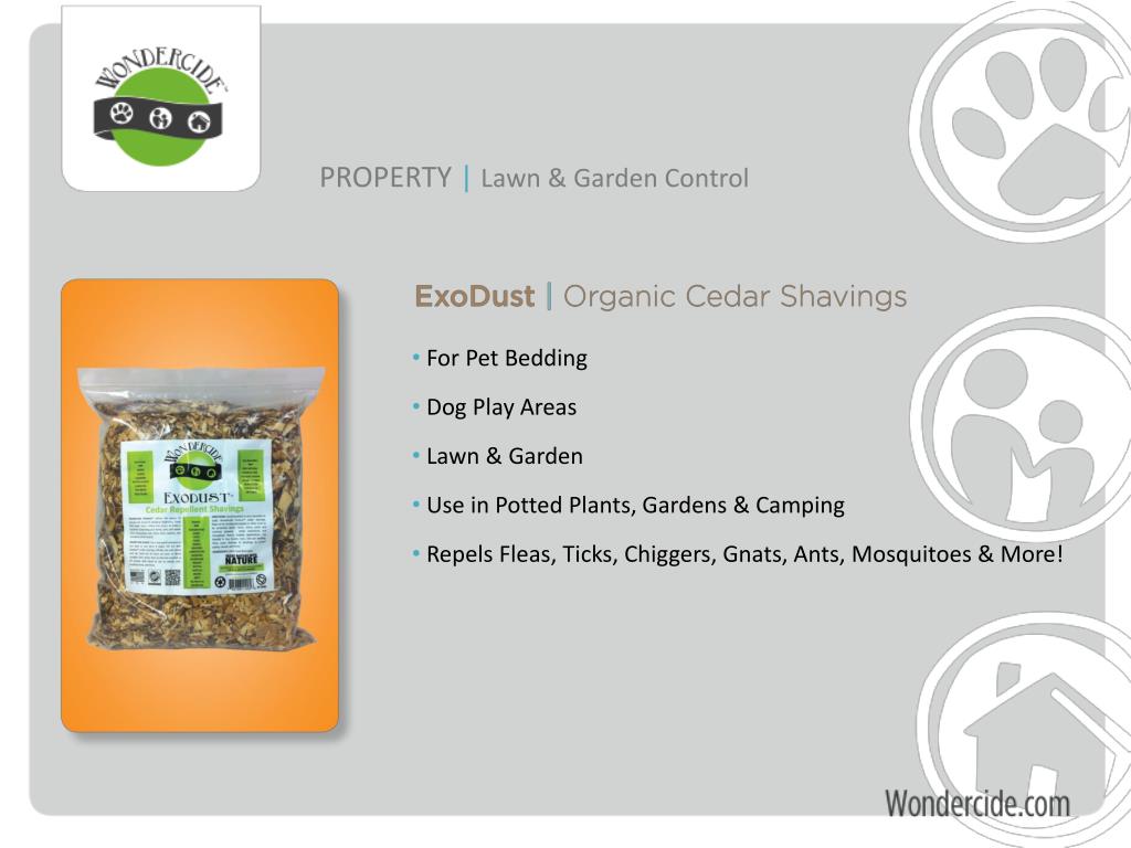 PROPERTY |Lawn & Garden Control • For Pet Bedding • Dog Play Areas • Lawn & Garden • Use in Potted Plants, Gardens & Camping • Repels Fleas, Ticks, Chiggers, Gnats, Ants, Mosquitoes & More!