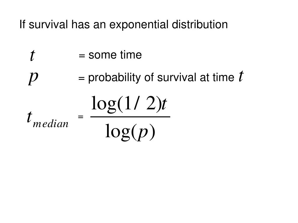 = some time = probability of survival at time If survival has an exponential distribution = =