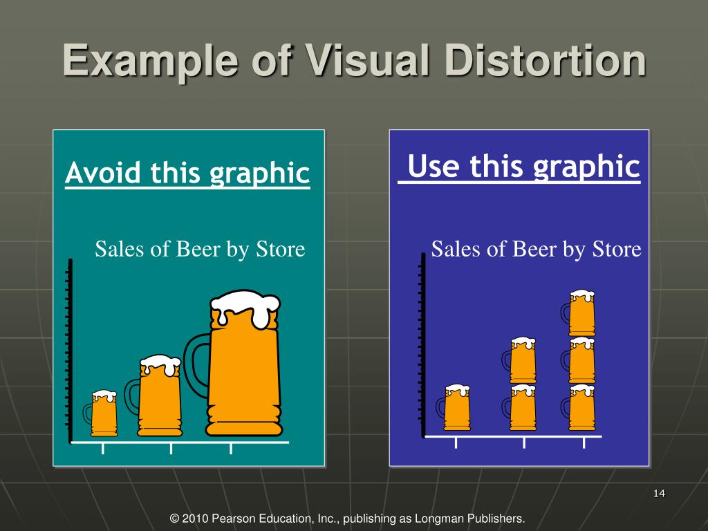 Avoid this graphic Use this graphic Sales of Beer by Store Sales of Beer by Store Example of Visual Distortion