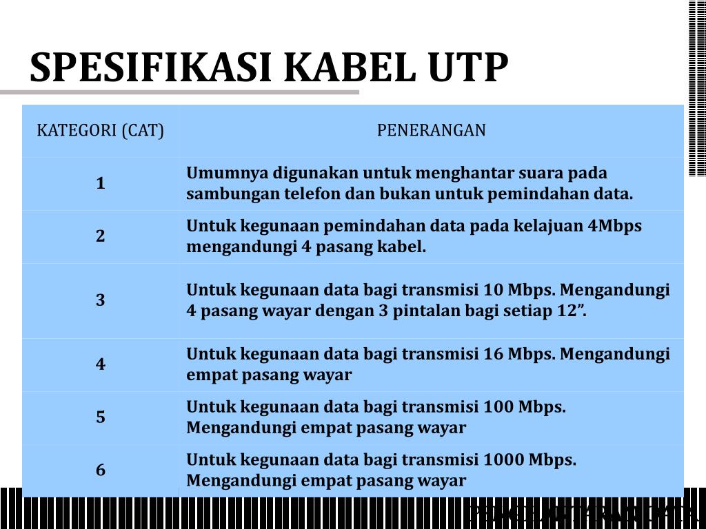 SPESIFIKASI KABEL UTP PENGHANTARAN DATA