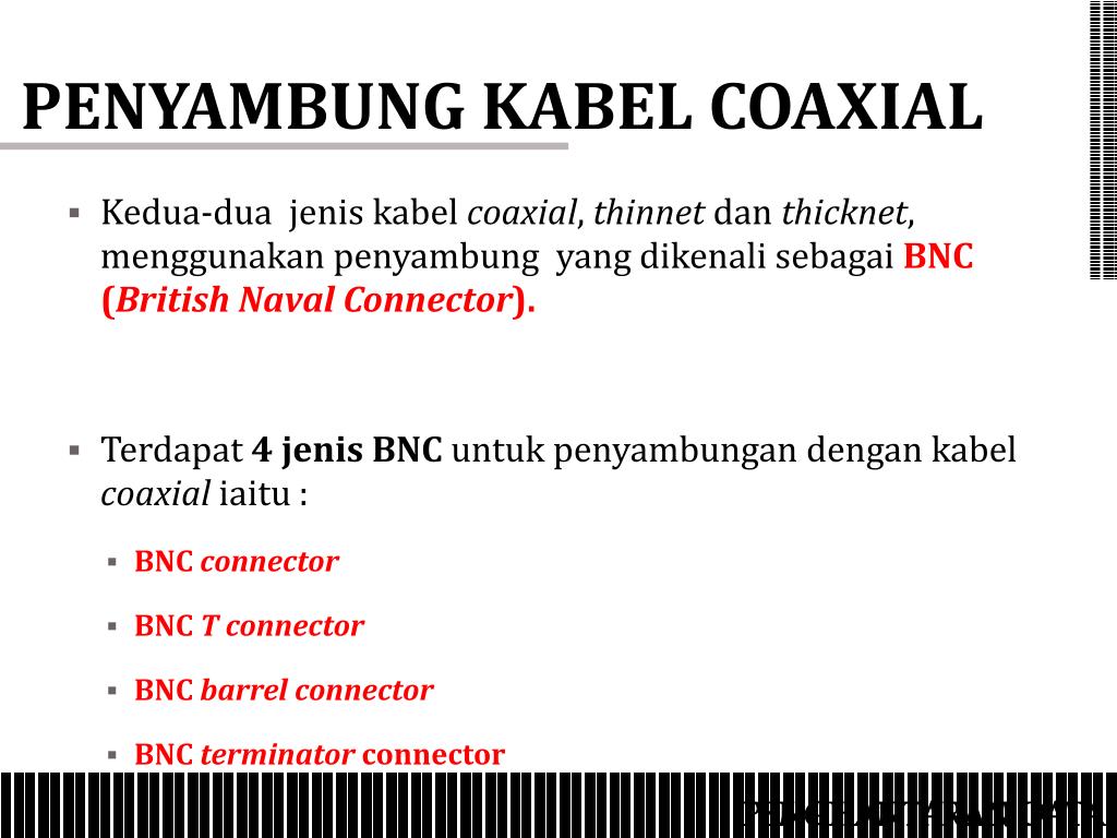 PENYAMBUNG KABEL COAXIAL Kabel Coaxial yang dipasang dengan BNC connector BNC terminator BNC T connector PENGHANTARAN DATA