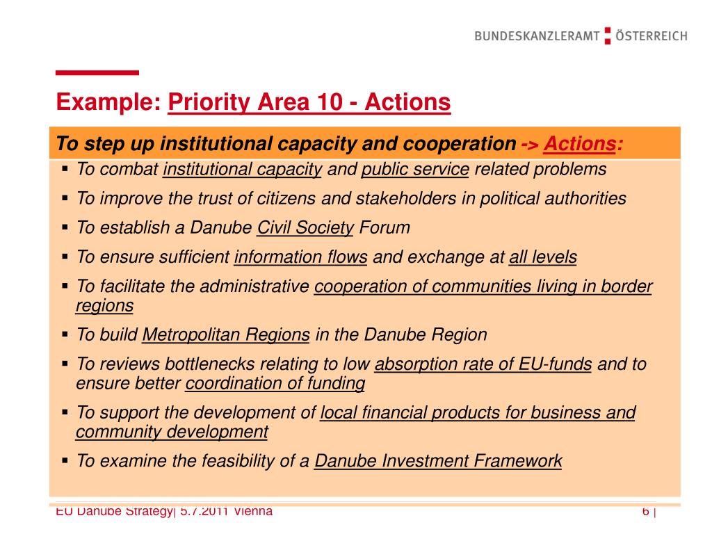 Example: Priority Area 10 - Actions EU Danube Strategy| 5.7.2011 Vienna 6 |