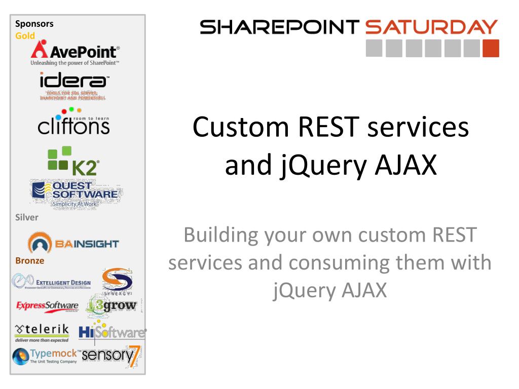 Custom REST services and jQuery AJAX. Building your own custom REST services and consuming them with jQuery AJAX. Custom REST services and jQuery AJAX. Building your own custom REST services and consuming them with jQuery AJAX. a bout John Liu. Surface!.