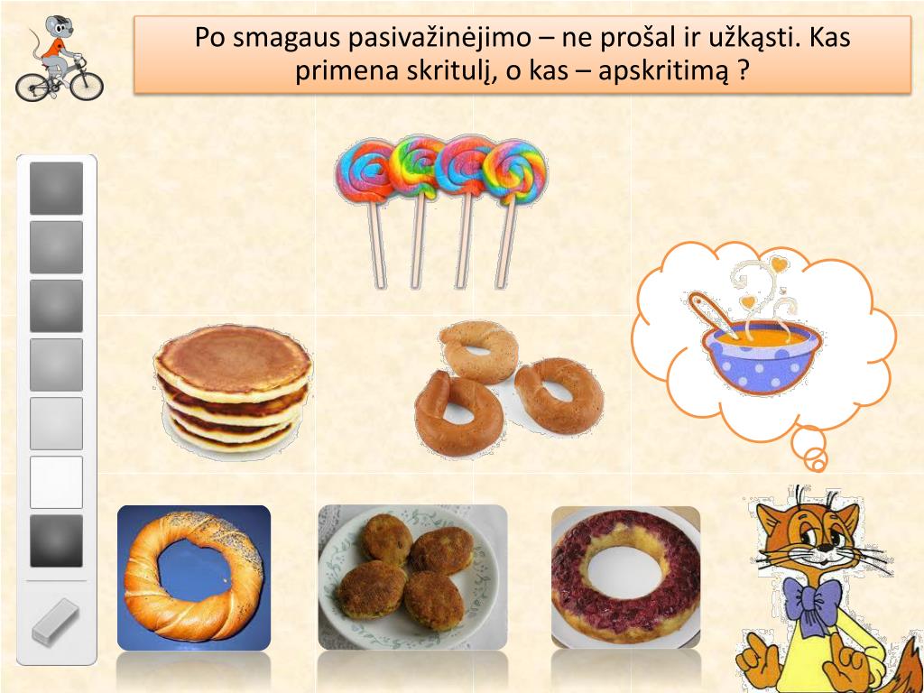Po smagaus pasivažinėjimo – ne prošal ir užkąsti. Kas primena skritulį, o kas – apskritimą ?