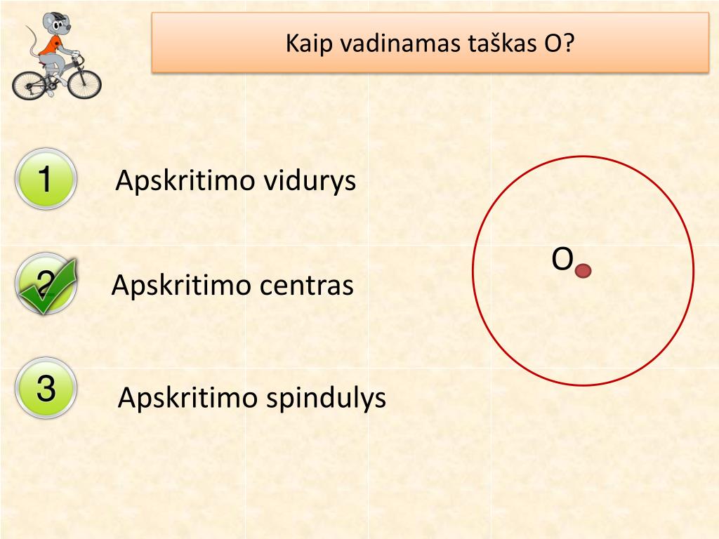 Kokią geometrinę figūrą primena peliuko dviračio ratai? Ratą Skritulį Apskritimą