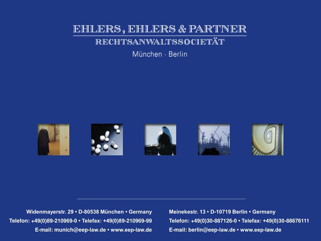 Widenmayerstr. 29 • D-80538 München • Germany Telefon: +49(0)89-210969-0 • Telefax: +49(0)89-210969-99 E-mail: munich@eep-law.de • www.eep-law.de Meinekestr. 13 • D-10719 Berlin • Germany Telefon: +49(0)30-887126-0 • Telefax: +49(0)30-88676111 E-mail: berlin@eep-law.de • www.eep-law.de
