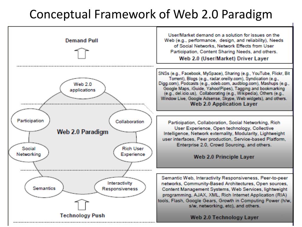Explore the principles and applications of Web 2.0 technology layers, the push-pull dynamics driving innovation, and the impact of social media on industry disruptions.