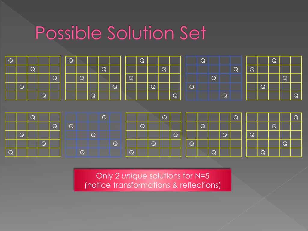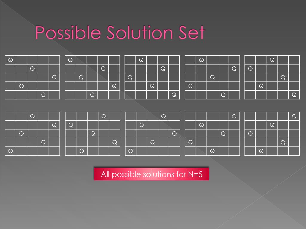 Possible Solution Set All possible solutions for N=5