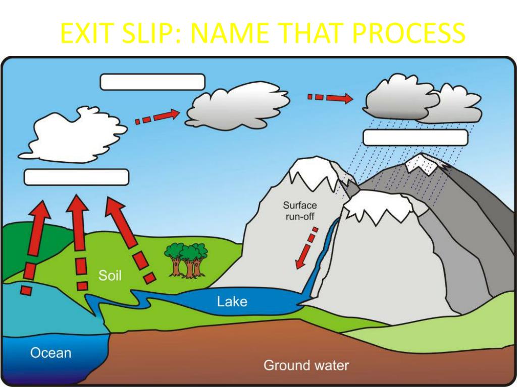 Homework Due Friday • Water cycle drawing: LABEL and draw the following • Condensation • Evaporation • Groundwater • Accumulation • Runoff • Precipitation • Transpiration
