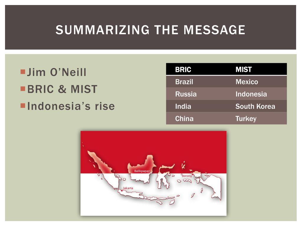Summarizing the Message • Jim O’Neill • BRIC& MIST • Indonesia’s rise