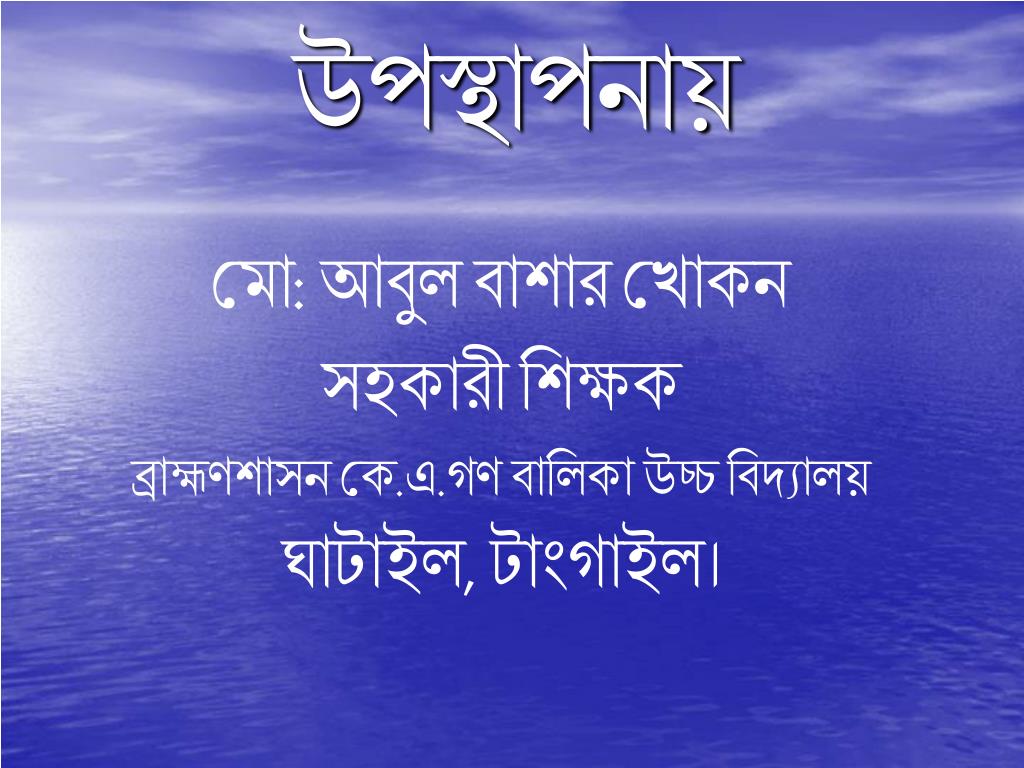 উপস্থাপনায় মো: আবুল বাশার খোকন সহকারী শিক্ষক ব্রাহ্মণশাসন কে.এ.গণ বালিকা উচ্চ বিদ্যালয় ঘাটাইল, টাংগাইল।