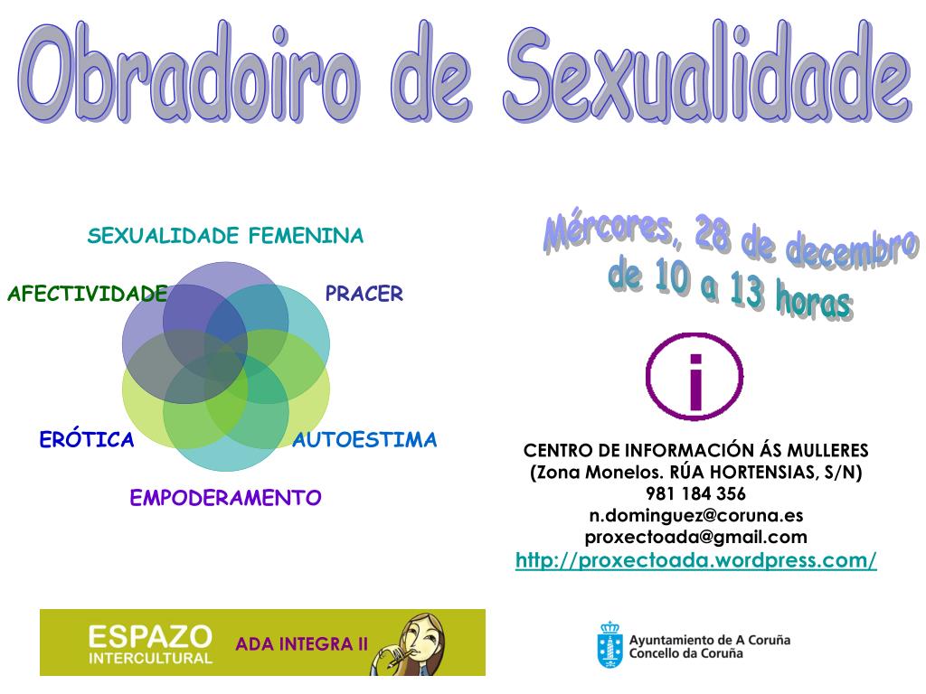 ADA INTEGRA II. Obradoiro de Sexualidade. Mércores, 28 de decembro de 10 a 13 horas. CENTRO DE INFORMACIÓN ÁS MULLERES (Zona Monelos. RÚA HORTENSIAS, S/N) 981 184 356 n.dominguez@coruna.es proxectoada@gmail.com http://proxectoada.wordpress.com/.