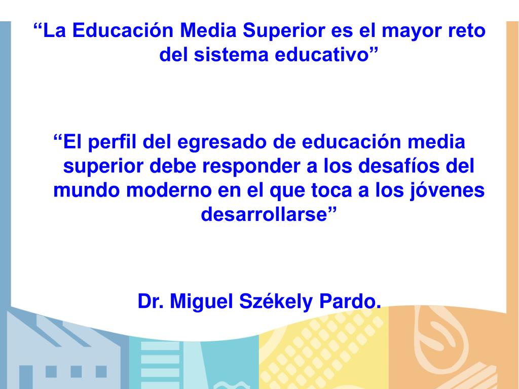 “La Educación Media Superior es el mayor reto del sistema educativo” “El perfil del egresado de educación media superior debe responder a los desafíos del mundo moderno en el que toca a los jóvenes desarrollarse” Dr. Miguel Székely Pardo.
