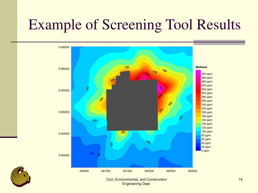 Example of Screening Tool Results Civil, Environmental, and Construction Engineering Dept.