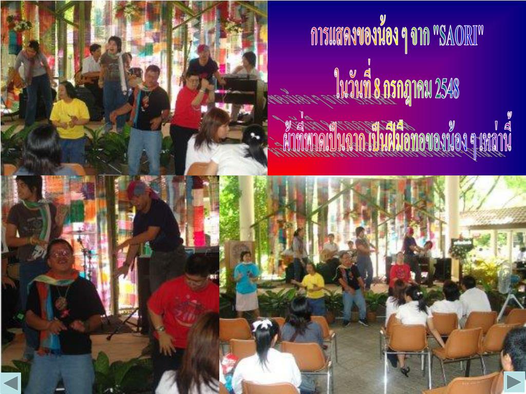 การแสดงของน้อง ๆ จาก "SAORI" ในวันที่ 8 กรกฎาคม 2548 ผ้าที่พาดเป็นฉาก เป็นฝีมือทอของน้อง ๆ เหล่านี้