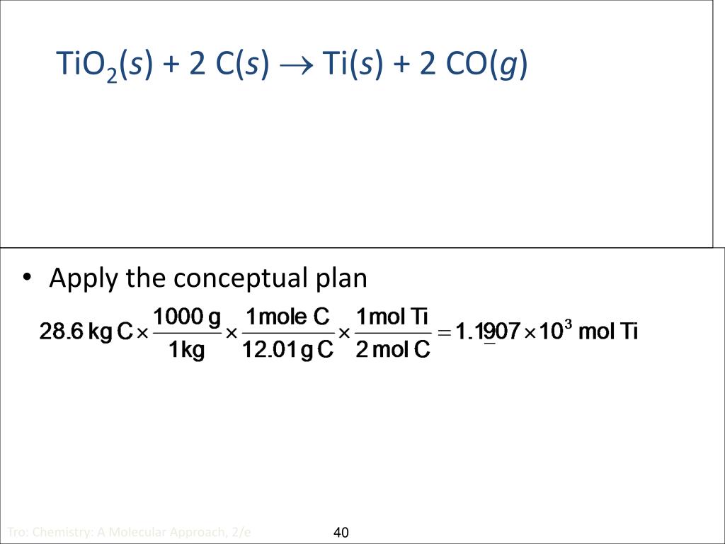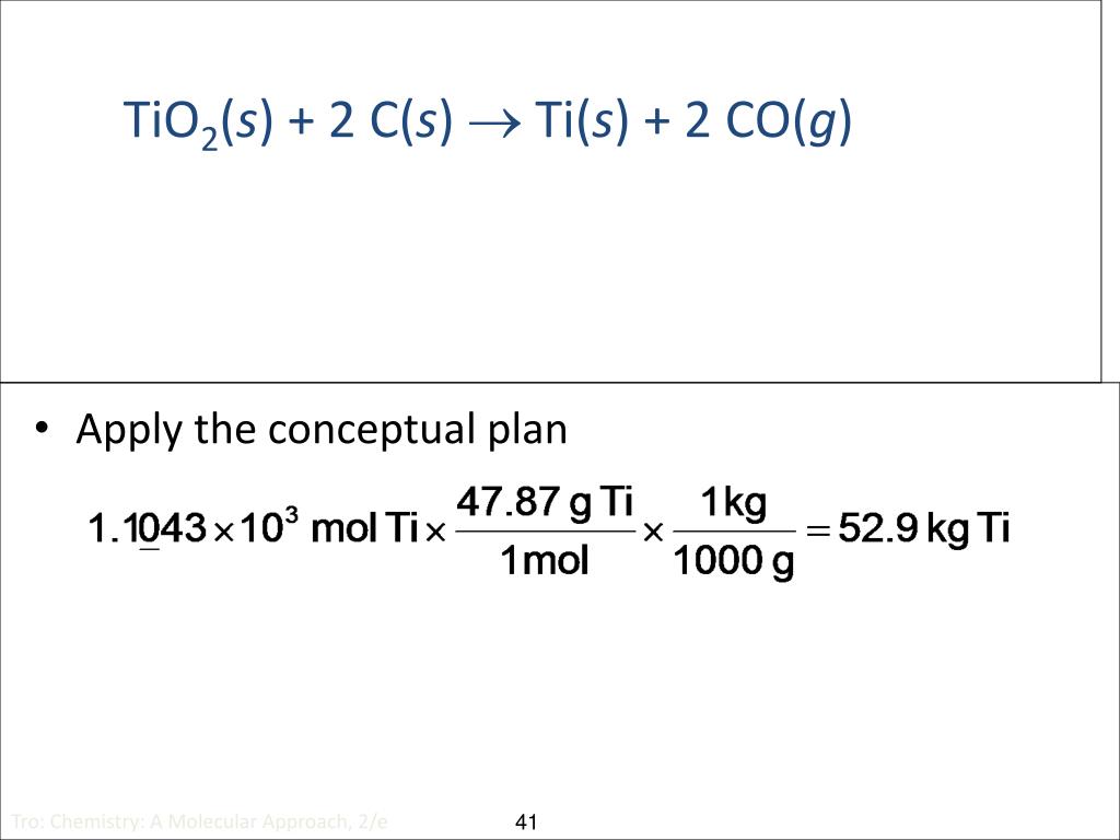 TiO2(s) + 2 C(s) Ti(s) + 2 CO(g) • Apply the conceptual plan Tro: Chemistry: A Molecular Approach, 2/e 40