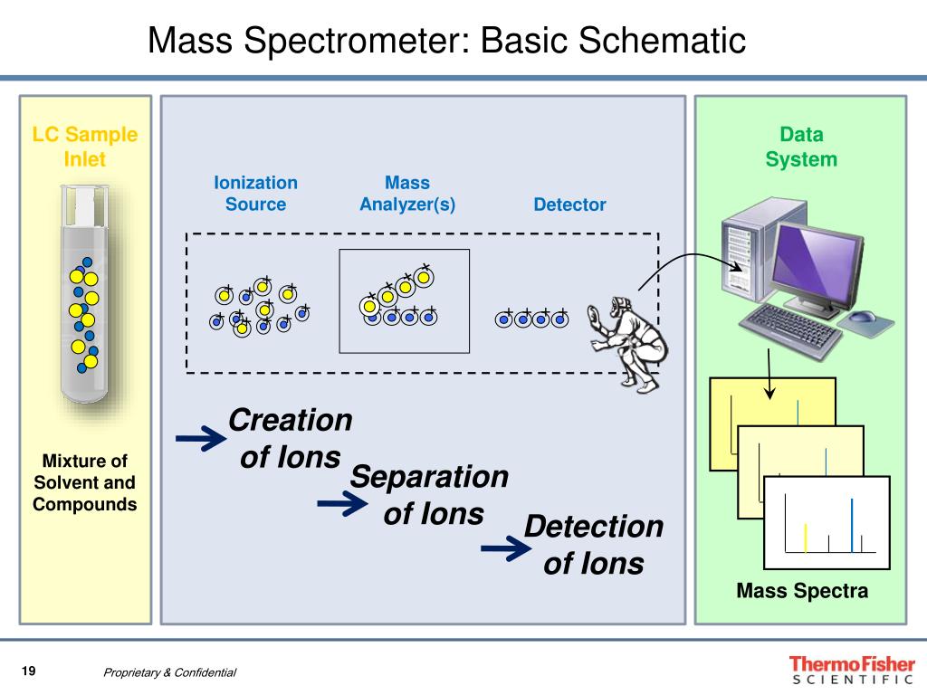 + + + + + + + + + + + + + + + + + + + + + Mass Spectrometer: Basic Schematic LC Sample Inlet Data System Ionization Source Mass Analyzer(s) Detector + + Creation of Ions Mixture of Solvent and Compounds Separation of Ions Detection of Ions Mass Spectra