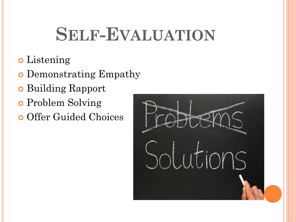 Self-Evaluation • Listening • Demonstrating Empathy • Building Rapport • Problem Solving • Offer Guided Choices