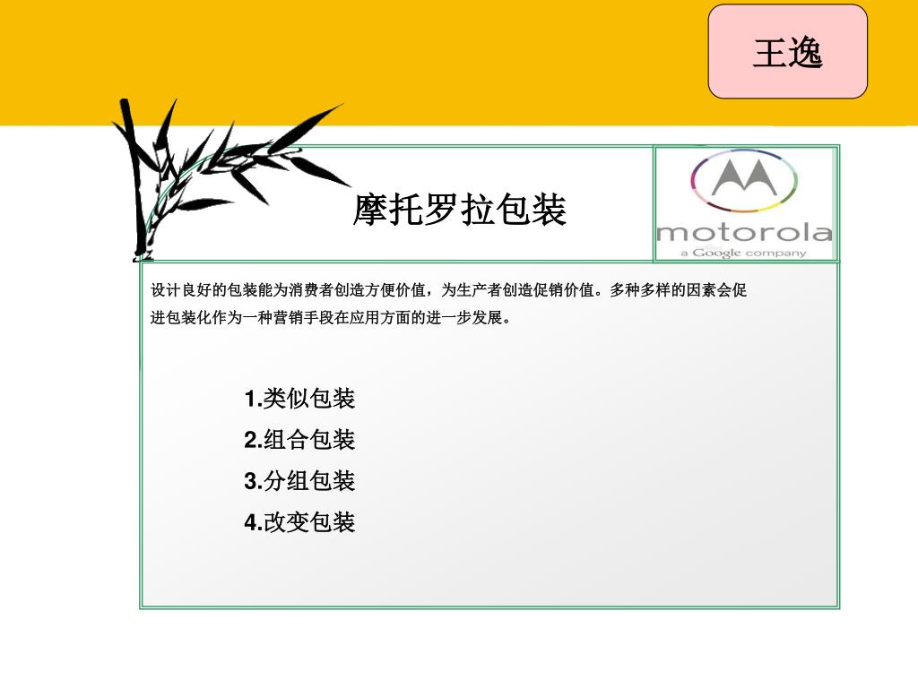 摩托罗拉 摩托罗拉品牌 产品组合策略 摩托罗拉包装 王逸