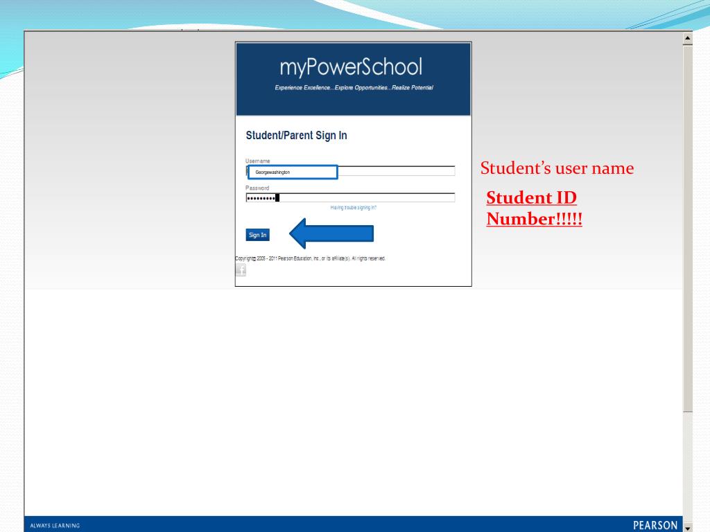 Student’s user name Georgewashington • Student ID Number!!!!!
