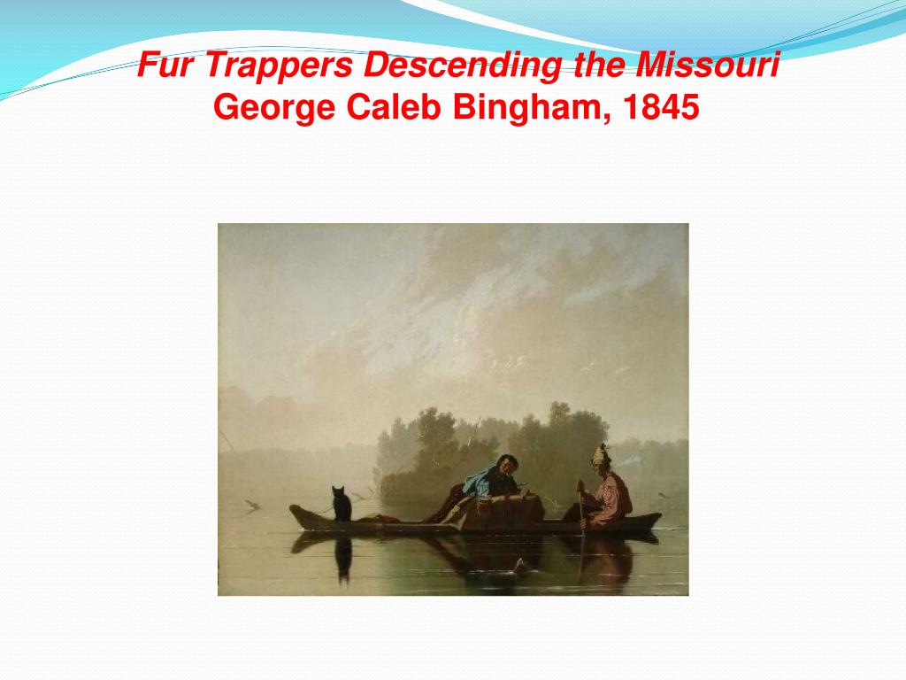 The Hudson River School • These artists captured the undiluted power of nature • Paint the nation’s most spectacular and undeveloped areas [the new Garden of Eden]. • Nature was the best source of wisdom & fulfillment. • They created visual embodiments of the ideals of the Transcendentalists. * painting is the vehicle through which the universal mind could reach the mind of mankind. * art is the agent of moral & spiritual transformation.