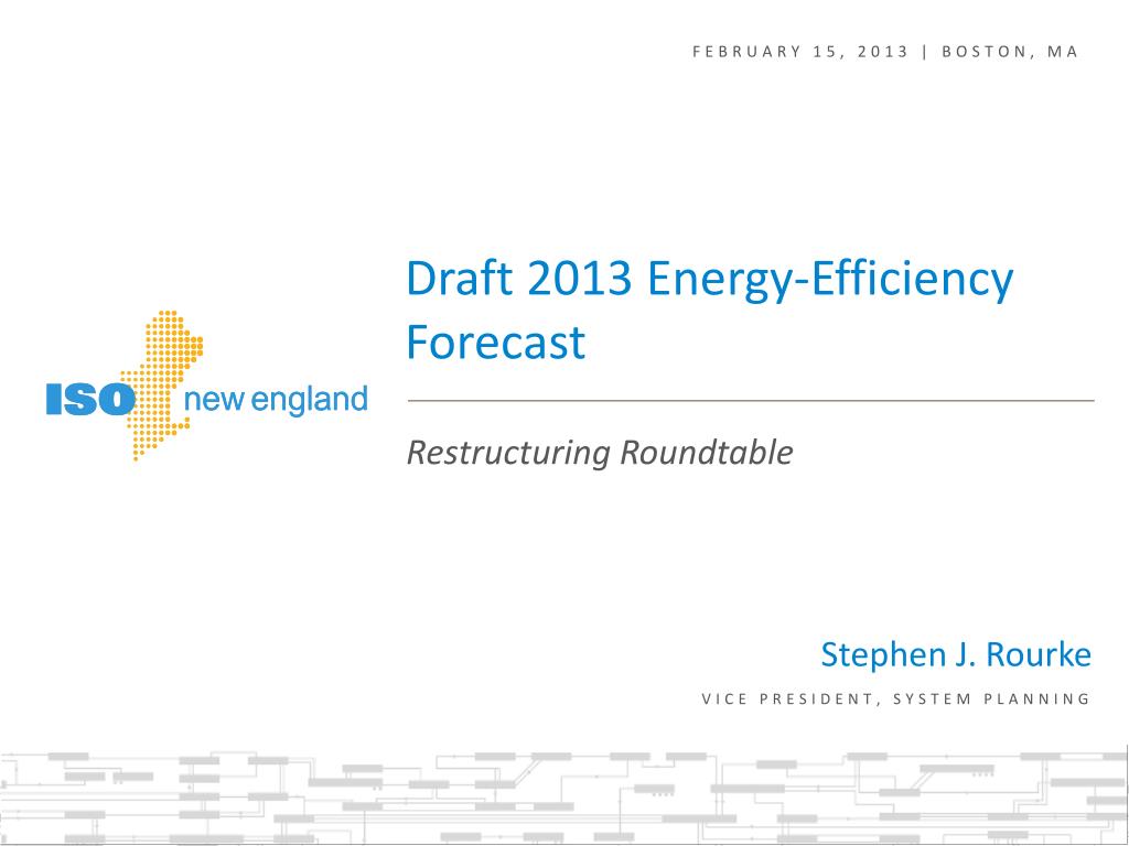 February 15, 2013 | Boston, ma. Stephen J. Rourke. VICE PRESIDENT, SYSTEM PLANNING. Restructuring Roundtable. Draft 2013 Energy-Efficiency Forecast. About ISO New England. Not-for-profit corporation