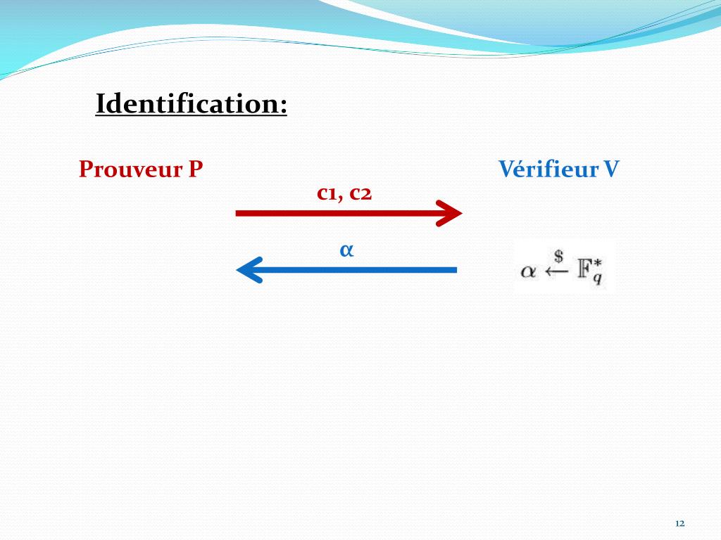 Identification: Prouveur P Vérifieur V c1, c2 α