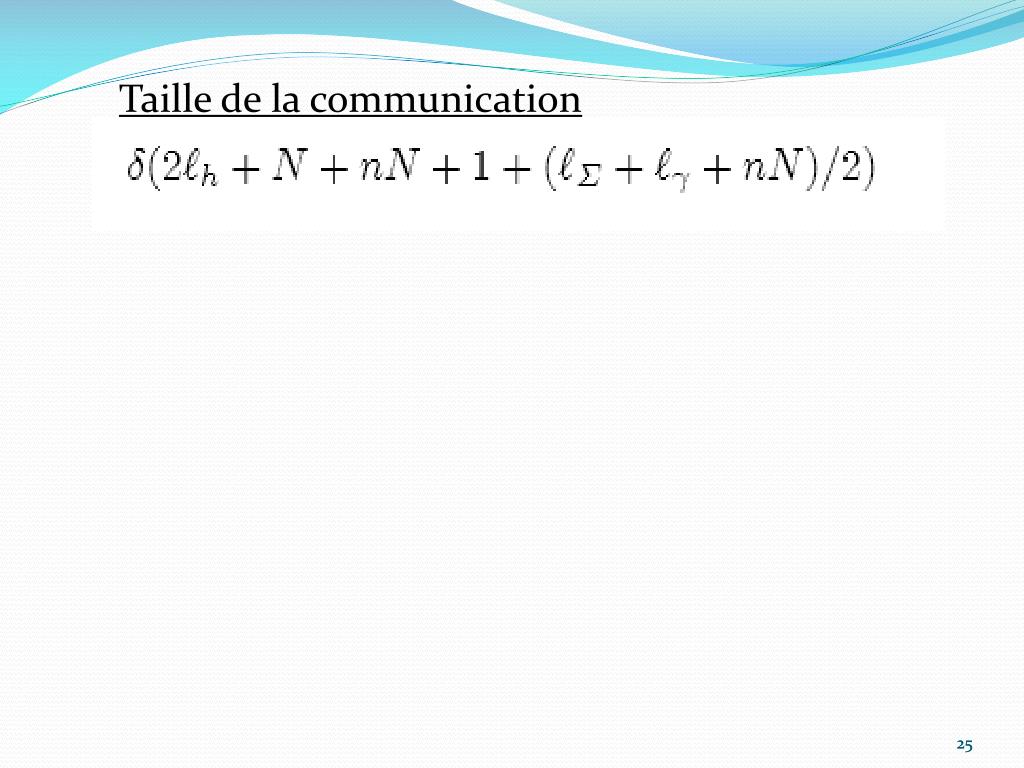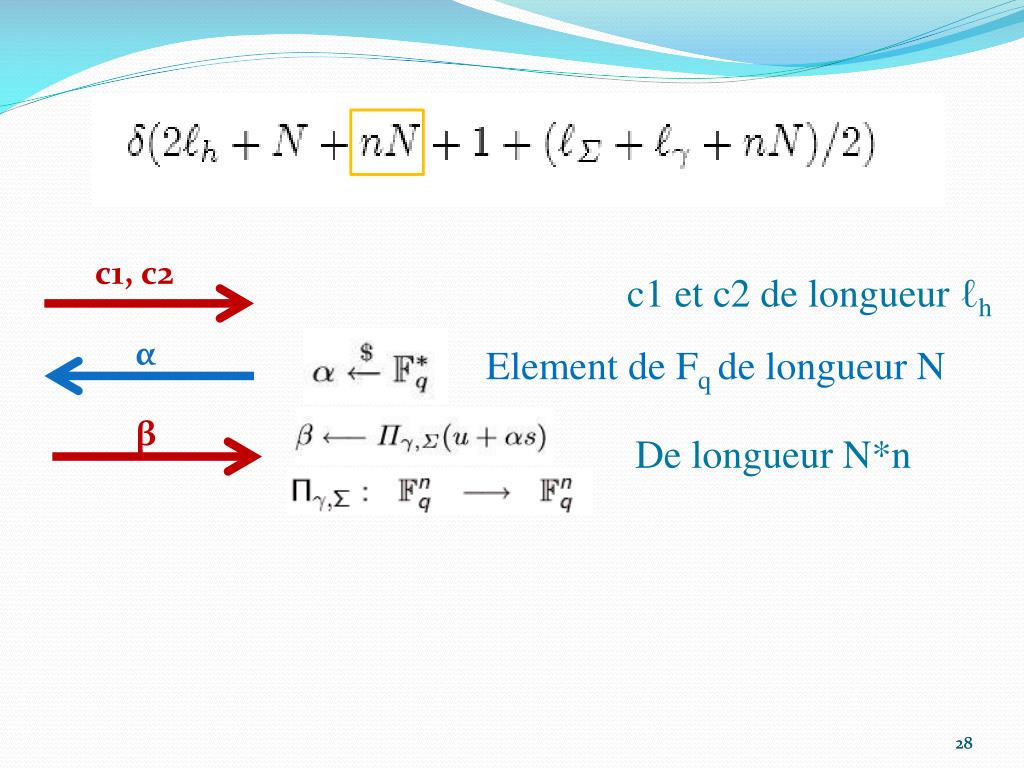 c1, c2 c1 et c2 de longueur ℓh α Element de Fqde longueur N β De longueur N*n 28