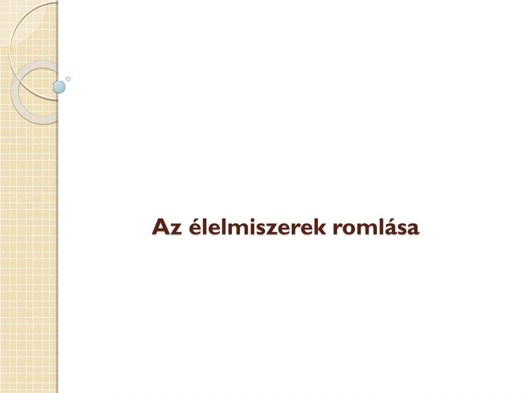 Az élelmiszerek romlása. Az élelmiszerek romlása. Az élelmiszer romlásának két fajtája. A mikroorganizmus a forgalomképességet változtatja = növényi kórokozók + lebontó szervezetek. A mikroorganizmus az egészségügyi minőséget változtatja = emberi kórokozók.