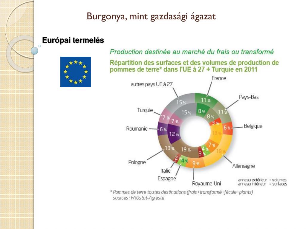 Burgonya, mint gazdasági ágazat A burgonyatermelés globális értéke 6 milliárd dollár / év (2 milliárd: friss burgonya, 4 milliárd: feldolgozott burgonya (fagyasztott termékek, keményítő…)