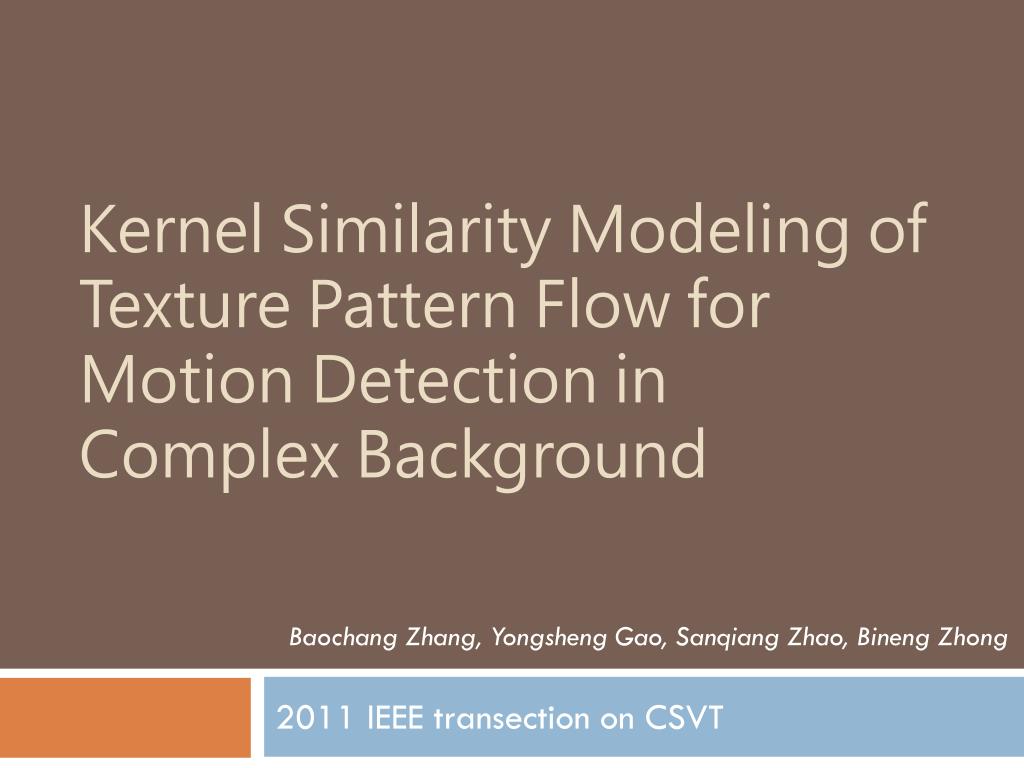 Kernel Similarity Modeling of Texture Pattern Flow for Motion Detection in Complex Background Baochang Zhang, YongshengGao, Sanqiang Zhao, BinengZhong 2011 IEEE transection on CSVT